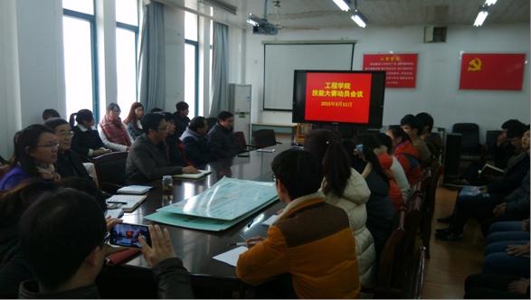 动员会上,院长蒋道霞指出,随着“一体化教学改革”“学徒制”项目启动,技能竞赛成绩逐渐成为衡量强校的标准之一,工程学院大力支持师生参加各项技能大赛,专门去学校申请各类竞赛的设备的购置、更新以及耗材费用,解决参赛教师和学生后顾之忧。希望同学们拿出自信,积极参与,每一位同学应有信心,有目标,积极备赛。同时,集训指导老师应发挥自身才智,全力以赴带好学生,打一场漂亮的胜仗。蒋院长说,目前选手们面临的重点问题是心理素质的提升和团队精神的发挥,相互帮助,共同进步,同时也要正确处理好训练与学习、生活之间的关系。随后,徐建高副院长向参赛选手们介绍了大赛的时间及比赛的种类场次,鼓励同学们精心准备周密谋划,作好赛前准备,上好每一堂课,通过参与技能竞赛,提高自己的能力,注意个人安全问题。